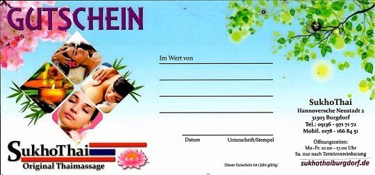 Machen Sie Ihren liebsten und Freunden ein besonderes Geschenk, mit einem Massagegutschein ihrer Wahl.
